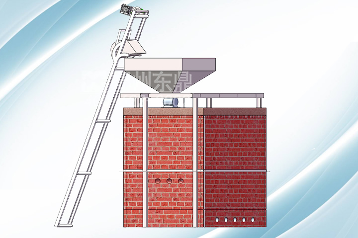 生物質(zhì)熱風(fēng)爐由生物質(zhì)燃燒機、高溫氣體凈化室和混風(fēng)室組成。工藝原理如下:生物質(zhì)燃料通過上料機加入到位于燃燒機料斗中,由送料螺旋勻速送入燃燒機的燃燒室,助燃風(fēng)由風(fēng)機送入分配室,通過調(diào)節(jié)閥分別進(jìn)入爐排下的風(fēng)倉,然后通過爐排穿過料層。顆粒料里的揮發(fā)份 先逸出,顆粒料在爐排上與空氣充分接觸并產(chǎn)生高溫?zé)煔?,高溫火焰從燃燒機出火口噴出。燃盡渣從燃燒機的另一端排出到出渣機,經(jīng)自動出渣機送出。高溫火焰進(jìn)入高溫氣體凈化室進(jìn)行二次燃燒,煙氣夾帶的粉塵在凈化室內(nèi)經(jīng)高溫聚合沉降。凈化室內(nèi)出來的潔凈熱風(fēng)(~1000℃)摻入一定量的冷風(fēng),混合成物料干燥所需溫度的熱風(fēng)進(jìn)入烘干設(shè)備(如噴霧塔、回轉(zhuǎn)窯、烘箱、烘房、氣流干燥器、流化床等)對物料進(jìn)行烘干。熱風(fēng)的溫度可根據(jù)工藝需要調(diào)整,連續(xù)供熱風(fēng)溫度穩(wěn)定性保持±5℃。