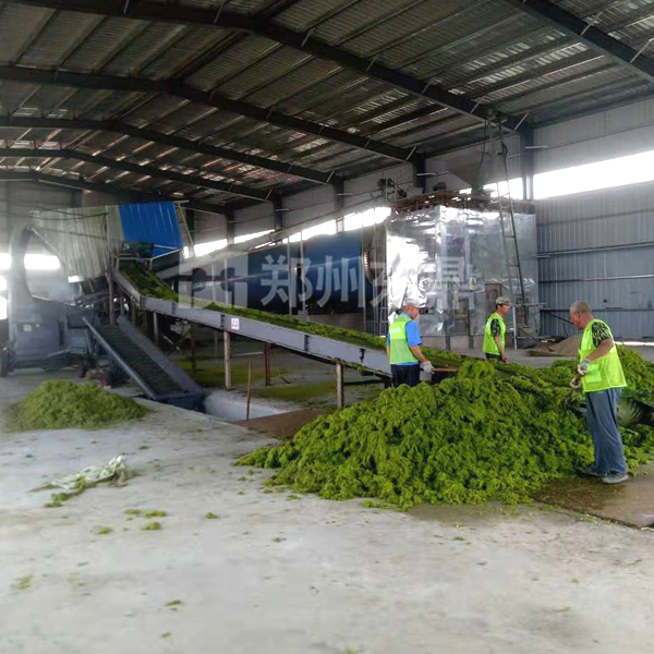 2、滸苔粉碎工序:為了便于烘干,滸苔要經(jīng)過粉碎處理,經(jīng)過快速切割后,纏繞在一起的滸苔被分割成細(xì)碎的纖維。